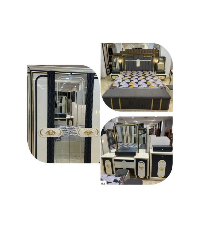 غرفة نوم صيني بتصميم تركي درجة اولى متكونه من 9 قطع صبغ حراري ثابت ليد ضوئي