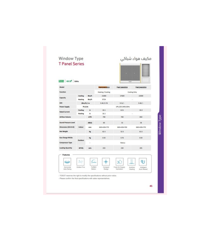 مكيف هواء بارد 2 طن من ماركة توسوت عالميه ضمان الوكاله