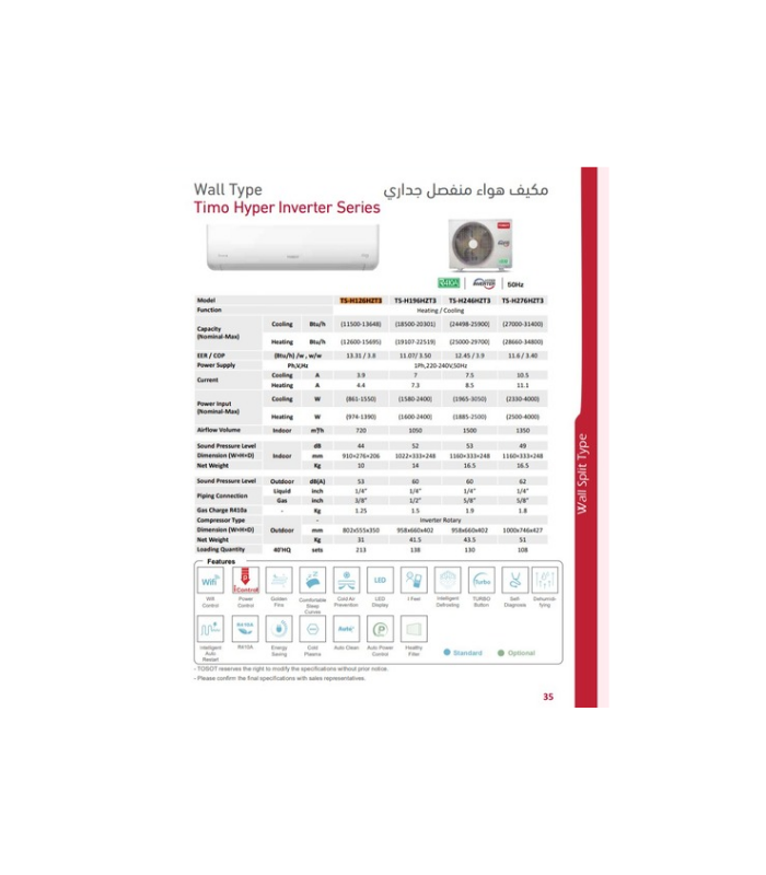 سبلت جداري 1.5طن امكانية تحكم واي فاي وضعيات تبريد