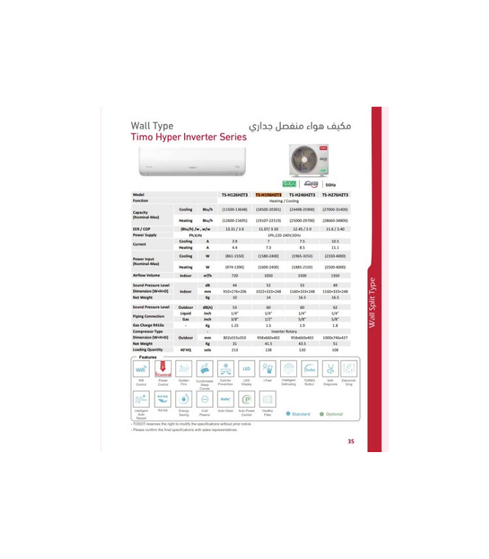 امكانية تحكم تشغيل والاطفاء تنظيف تلقائي تحكم ذكي هواء ديناميكي تيربو انفيرتر اقتصادي مع تدفئة