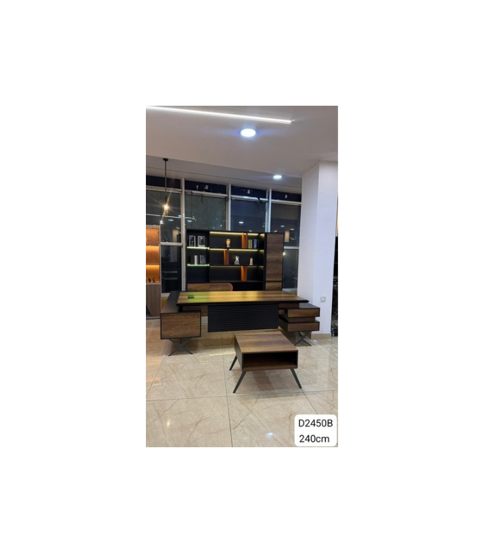 ميز مكتبي. كبير  :    ميز مكتب قياس 240 سم مع طبله ومكتبة تصميم مودرن حديث